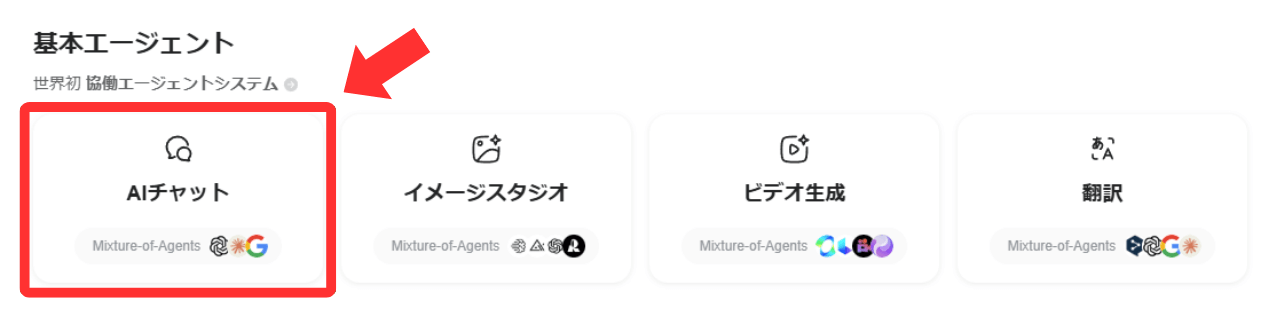- 使うAIモデルを手動選択、または自動で最適化(Mixture-of-Agents機能)