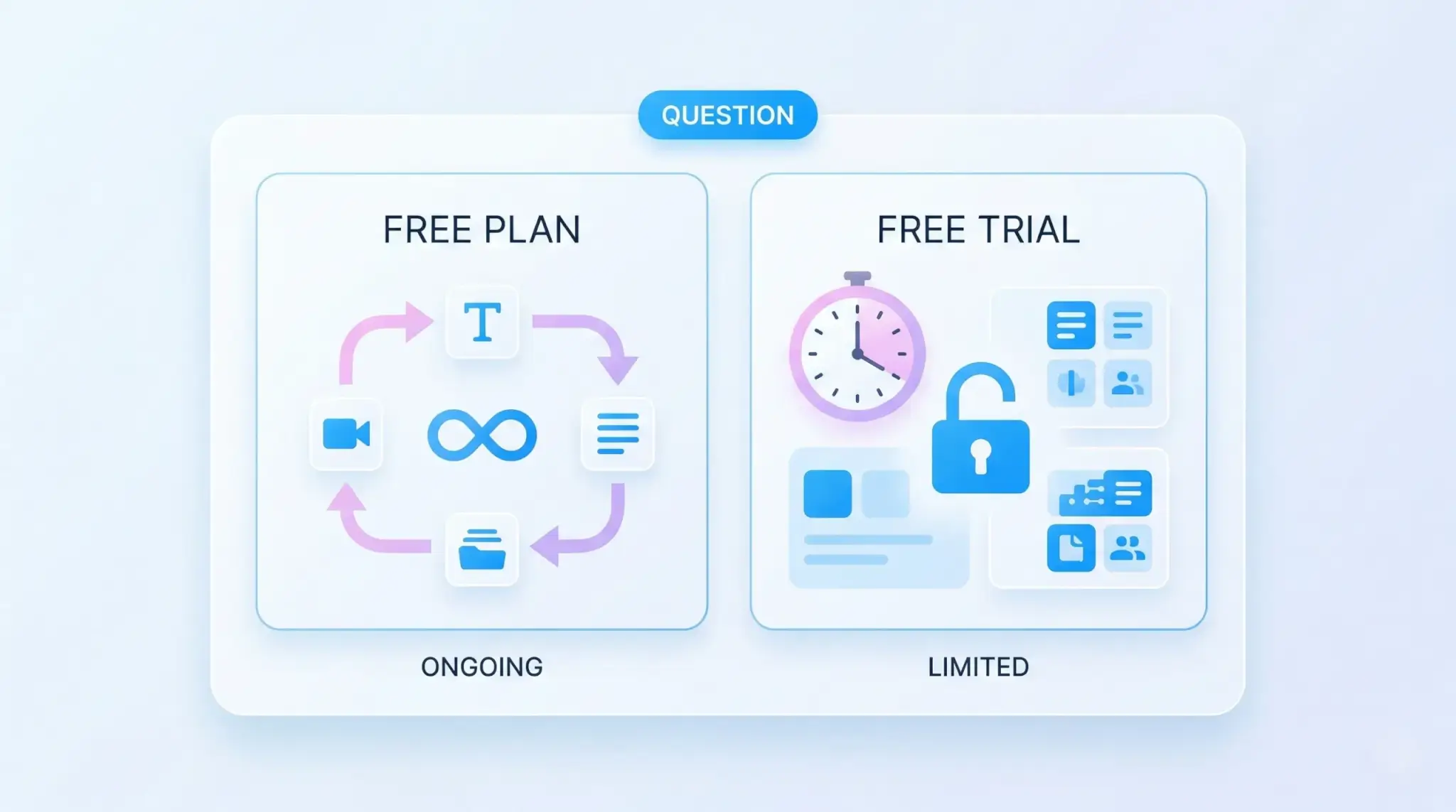 無料プランと無料トライアルは、どちらも無料で始められるように見えますが、役割が違います。