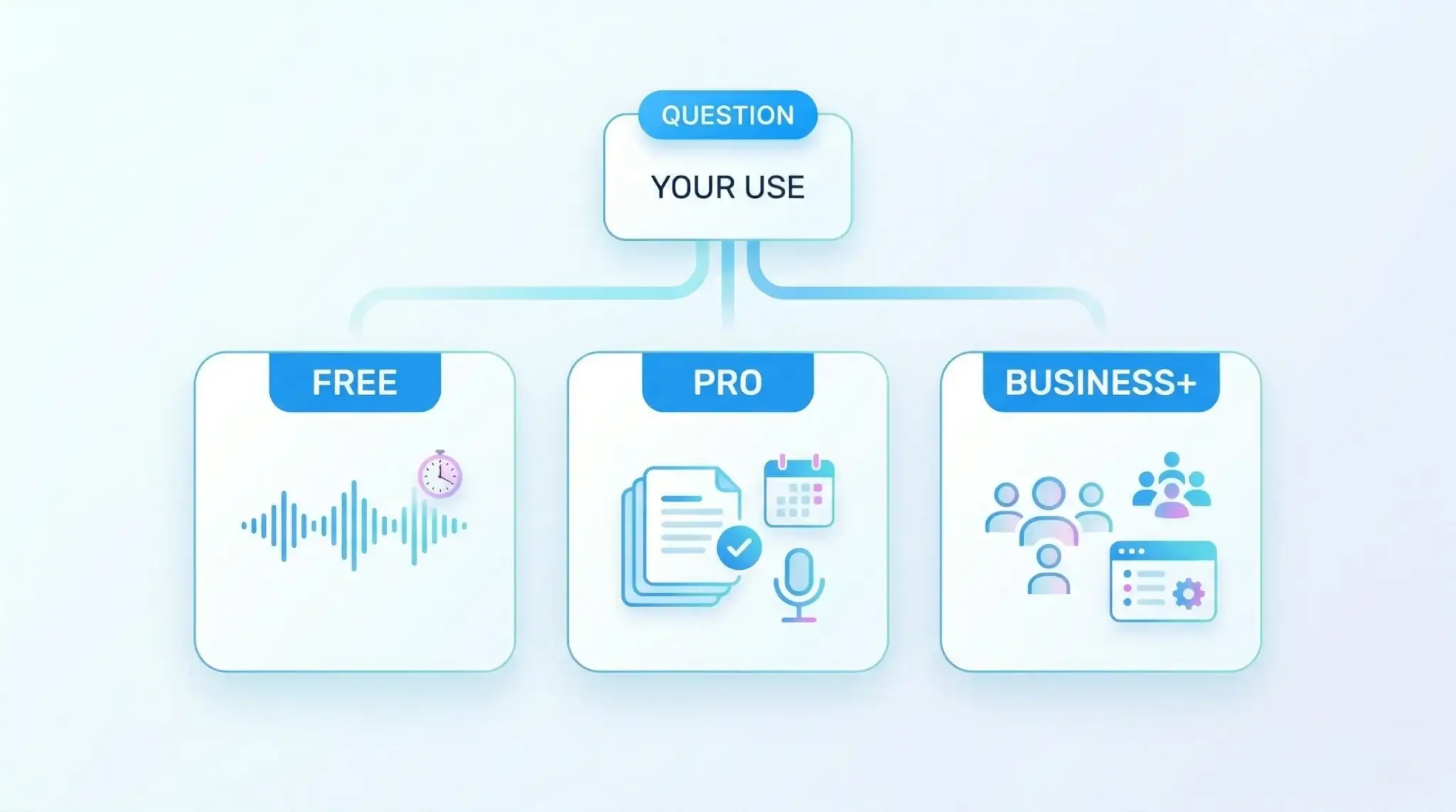 たとえば、移動中に2分のメモを録音する、会議冒頭だけ入れて精度を見る、共有リンクを相手に送って見え方を確かめるといった使い方なら、無料でも十分に試せます。