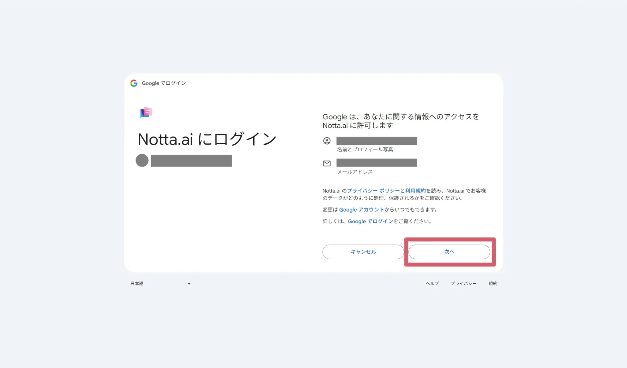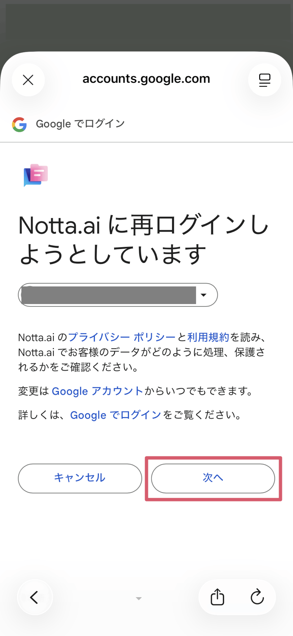 Web版と同様にいくつかのアカウントでログインが可能です。今回もGoogleアカウントで進めていきます。