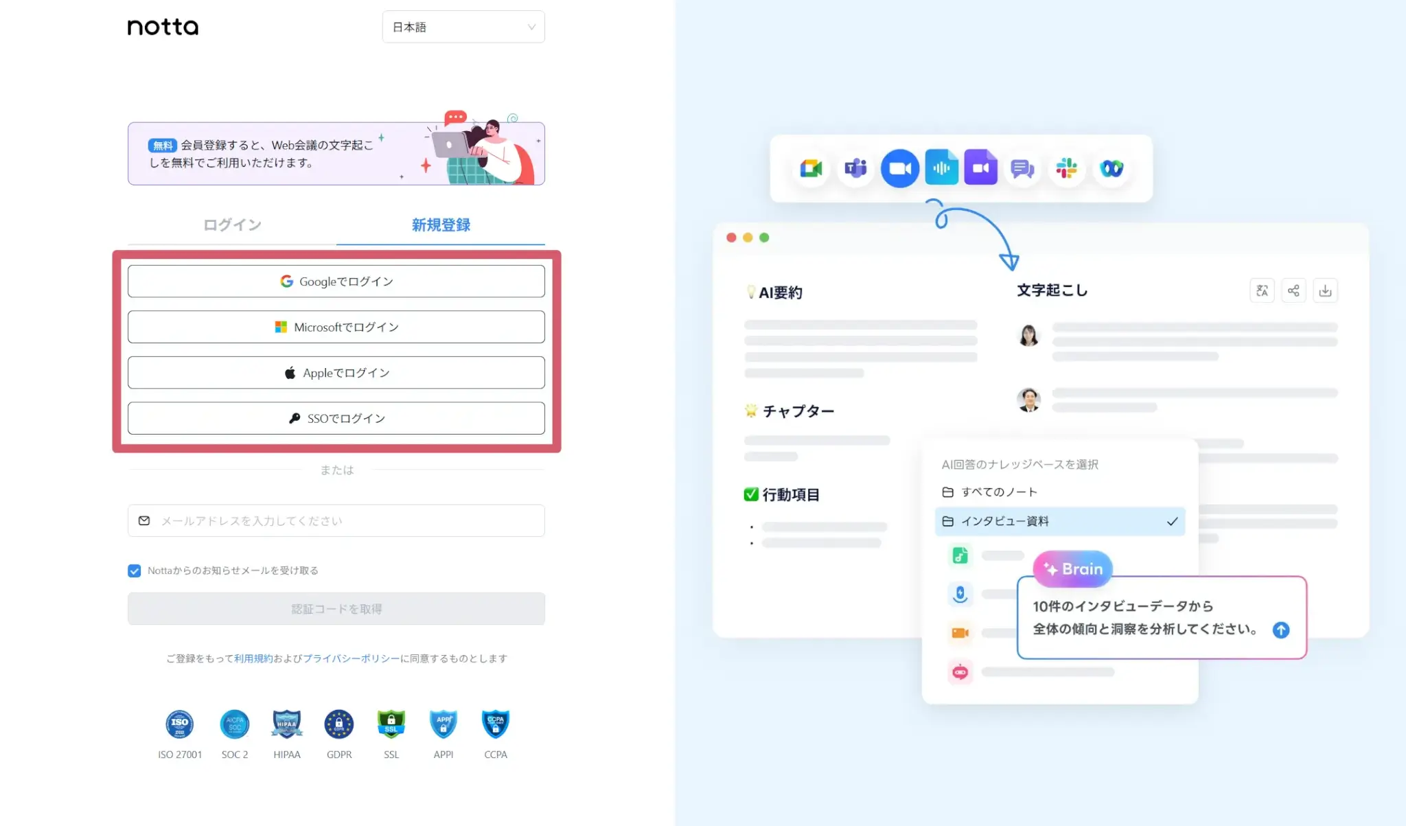 | Notta Brain | 1000クレジット | 1000クレジット | カスタマイズ | カスタマイズ |