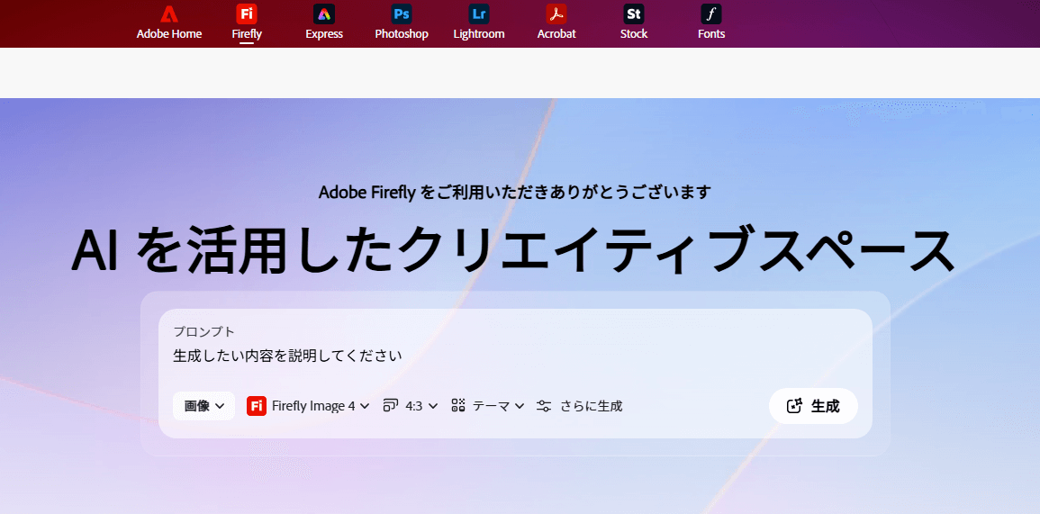 Adobe Fireflyは、Adobeが提供するAIを活用したクリエイティブツールです。