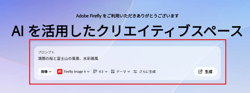 これで、Adobe Fireflyを使う準備が整いました。