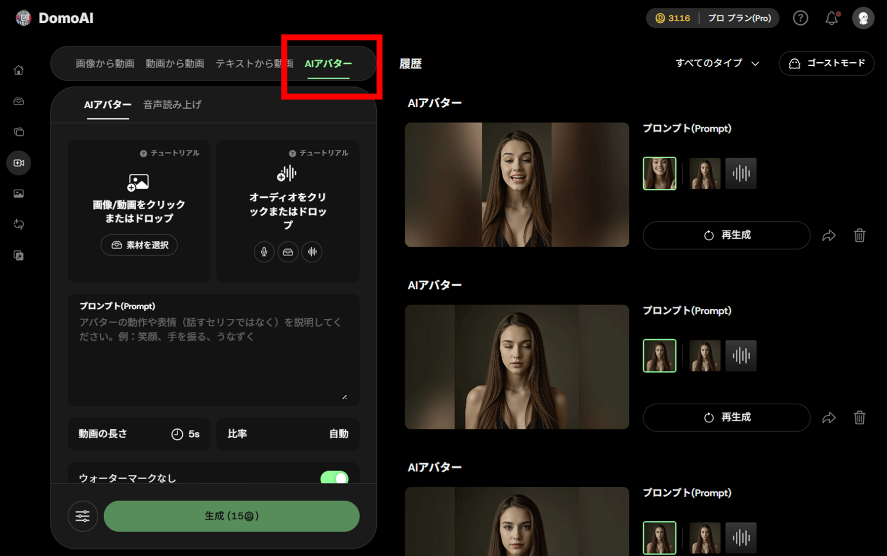 ElevenLabsで生成した音声を使い、DomoAIでしゃべるアバターを生成していきます。