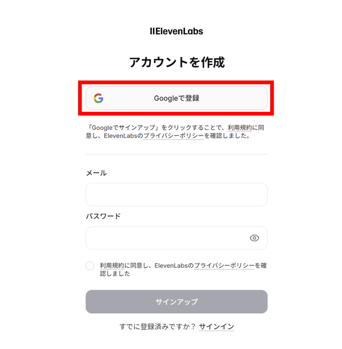 Googleアカウントもしくはメールアドレスでアカウントを登録できます。ここでは「Googleで登録」をクリックします。その後、アカウントとして登録したいGoogleアカウントを選択します。