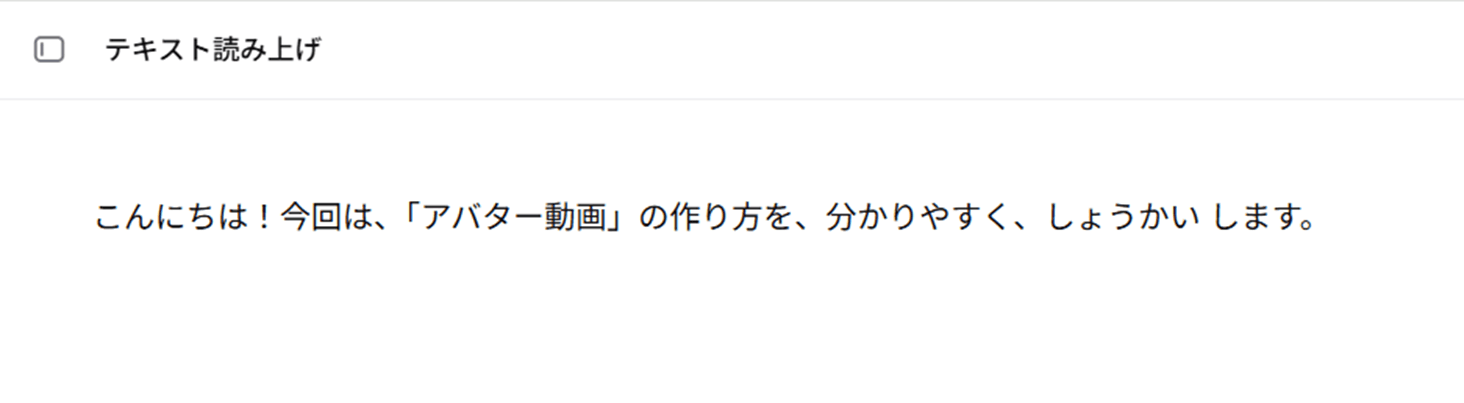 こうした工夫を入れることで、AIアバターがしゃべる動画でも聞き取りやすいナレーションになります。
