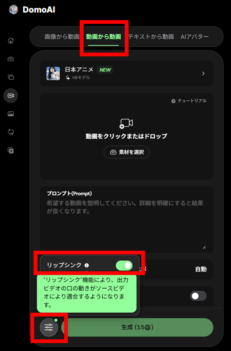 DomoAIの「動画から動画」のリップシンク機能を活用する方法