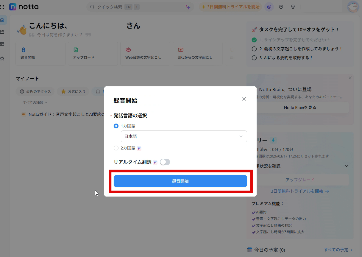 例えばNottaであれば、3日間無料でプレミアムプランを体験できます。