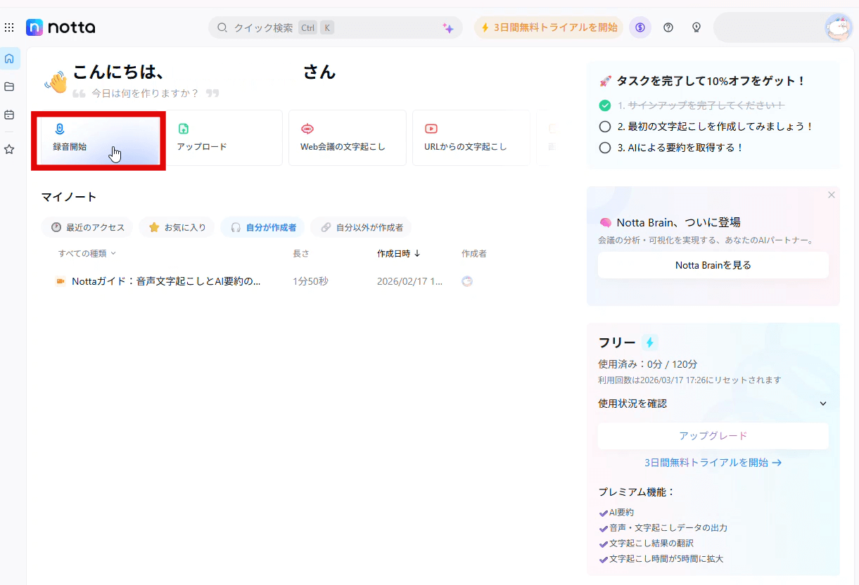 ここではNottaを例にして無料アプリを利用する場合の基本フローをご紹介します。