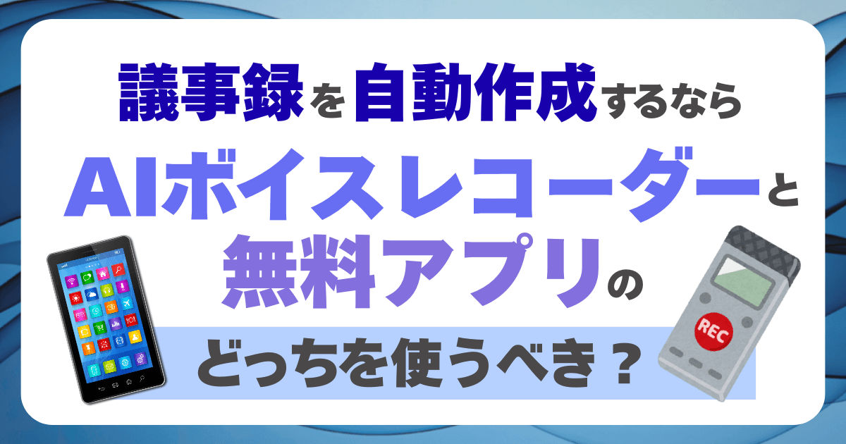 近年は、AIボイスレコーダーや無料アプリで録音した音声を文字起こしし、議事録を自動作成できるサービスが増えています。どっちを使うべきかは利用頻度や精度によって異なります。