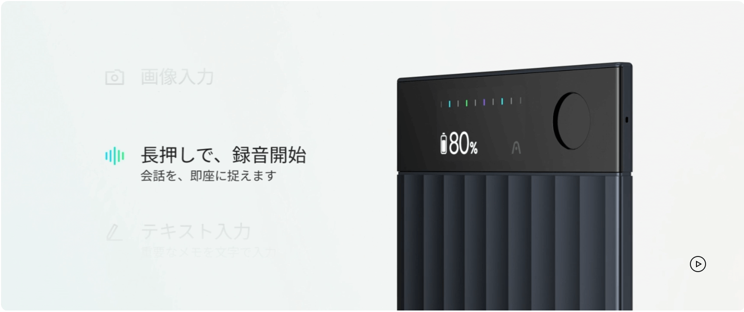 会議・取材・講義・通話など、日々の重要な音声を漏れなく記録できることに加え、その場で自動的に文字起こしと要約まで行う革新的なデバイスです。