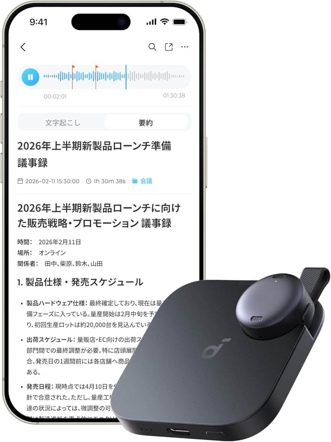 会議の記録・共有に寄せる 「Soundcore Work」(Anker)