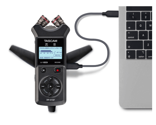 録音データはmicroSDカードに保存し、microSDXCは最大512GBまで対応します。PCへの取り込みはUSB Type-C接続またはカード経由で行えます。さらにDR-07XPは、2入力/2出力のUSBオーディオインターフェースとしても使えるため、録音・編集の環境をまとめやすいのもポイントです。