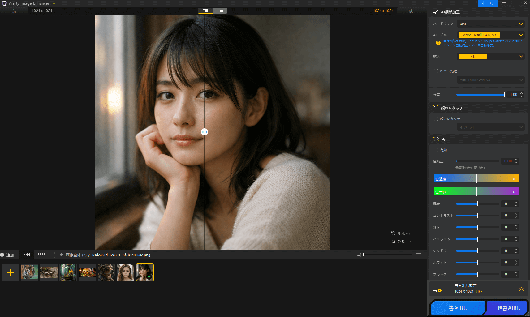 適切なモデルを選択すれば、過剰なシャープ処理や不自然なディテール生成を避けつつ、自然なアップスケールを実現できます。