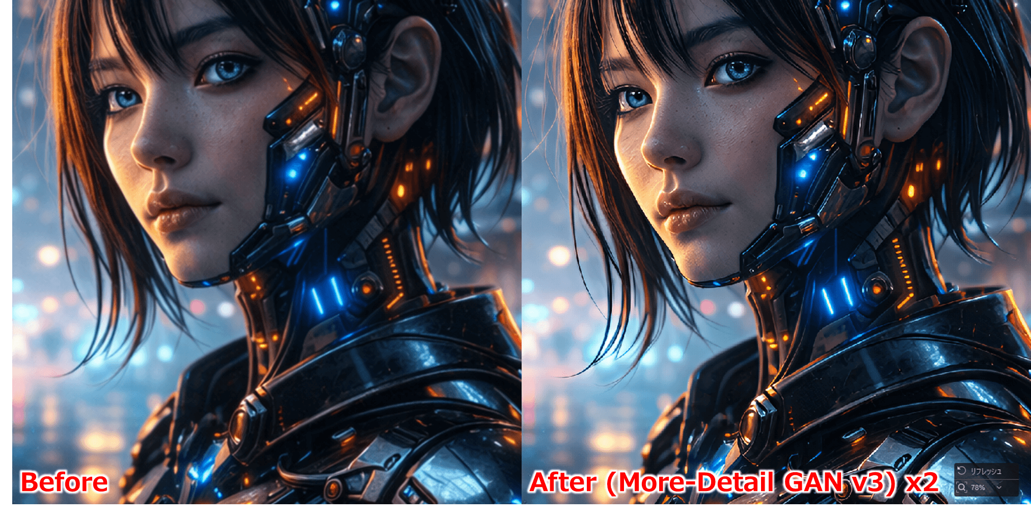| More-Detail GAN V2 | 写真・ディテール重視 | 不足しがちな細部を積極的に補完し、鮮明さを優先したアップスケールに向く |