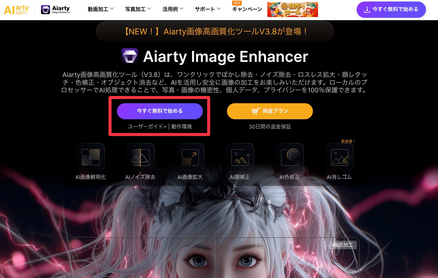 Aiarty Image Enhancerは無料プランでまず使い勝手や画質改善効果を確認できます。