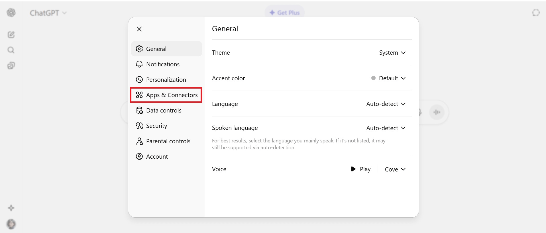 アクセス可能な権限の範囲はアプリごとに異なり、設定画面( Apps & Connectors)からいつでも接続解除が可能です。