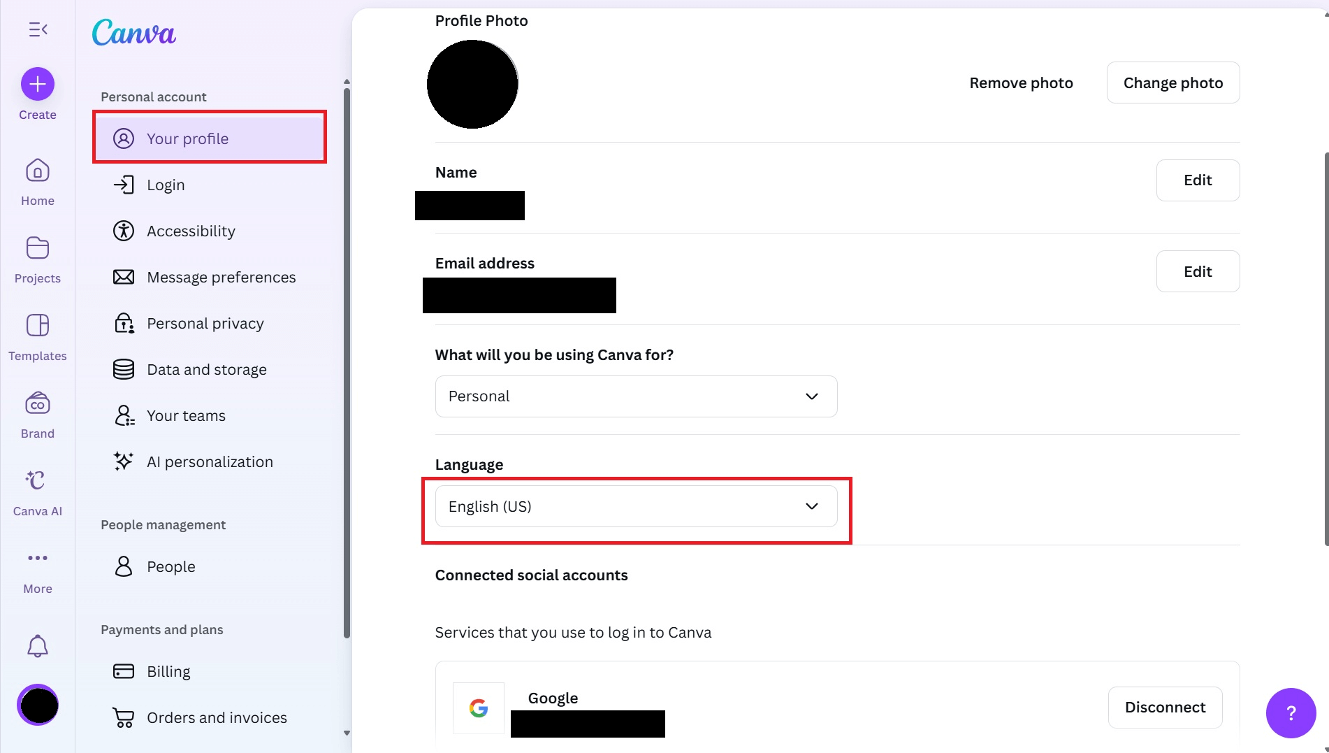 今回は、Canvaを選択します。Canvaのアカウントはあらかじめ取得し、事前にCanvaのUIを英語に直しておきましょう。