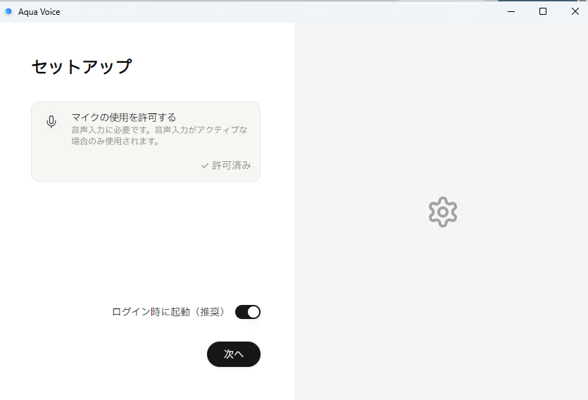 ダウンロードしたソフトを実行すると、 Aqua Voiceがインストールされます。ログインにはGoogleアカウントを使用します。