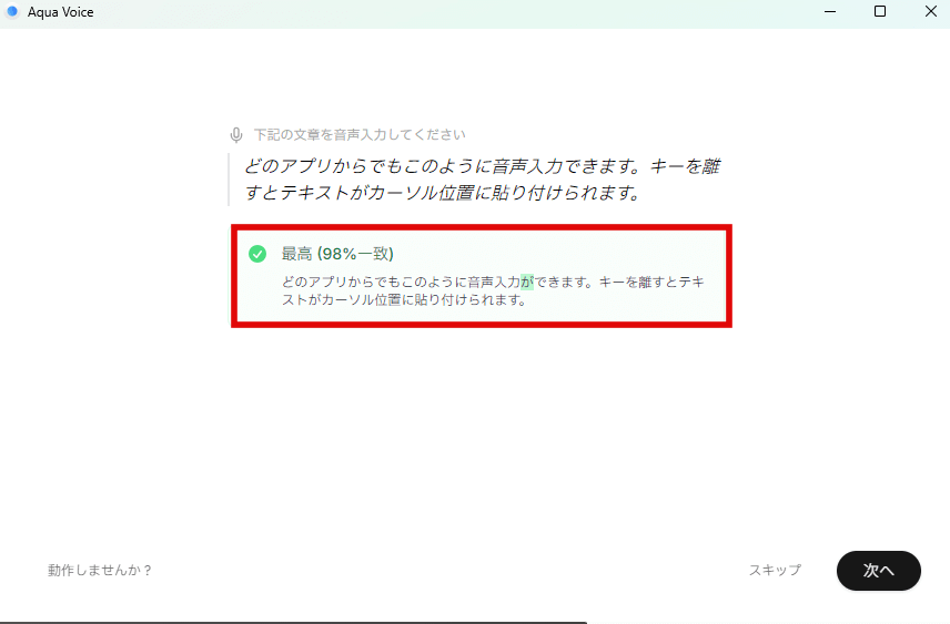 Aqua Voiceで音声がまったく入力されない場合、以下の手順で確認してください。
