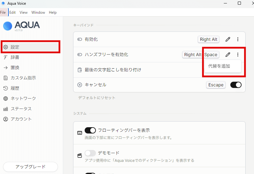 この章では、Aqua Voiceを快適に使い続けるための主要な設定とカスタマイズ方法を紹介します。