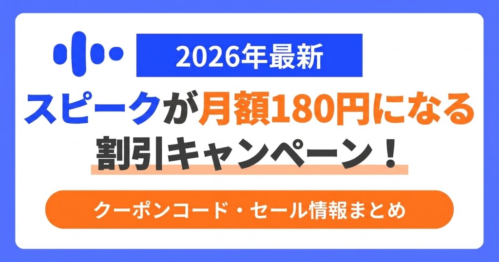 【2026年4月最新】スピークが月額180円になる割引キャンペーン!クーポンコード・セール情報まとめ