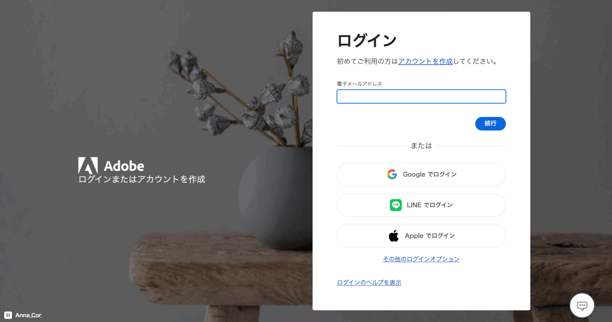ここで、STEP2で用意した無料のAdobeアカウントでログインしてください。
