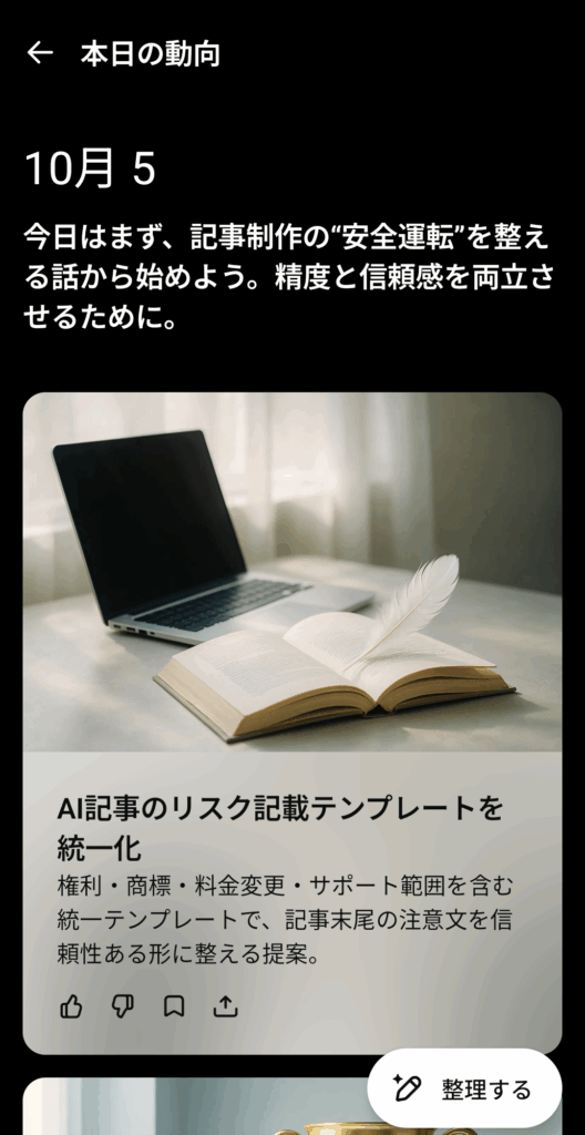 普段からモバイルを中心として情報収集を行っている方は、ぜひChatGPT Pulseを試してみてください。