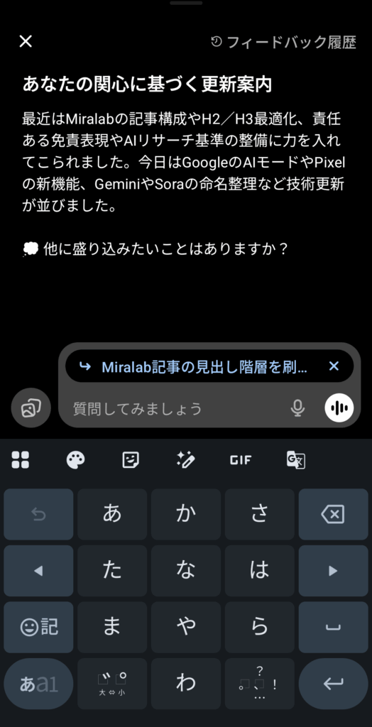 Pulseは、単なる応答ツールではなく、継続的な対話を通じてユーザーを深く理解し、パーソナルアシスタントへと進化していくAIの新しい形を示しています。