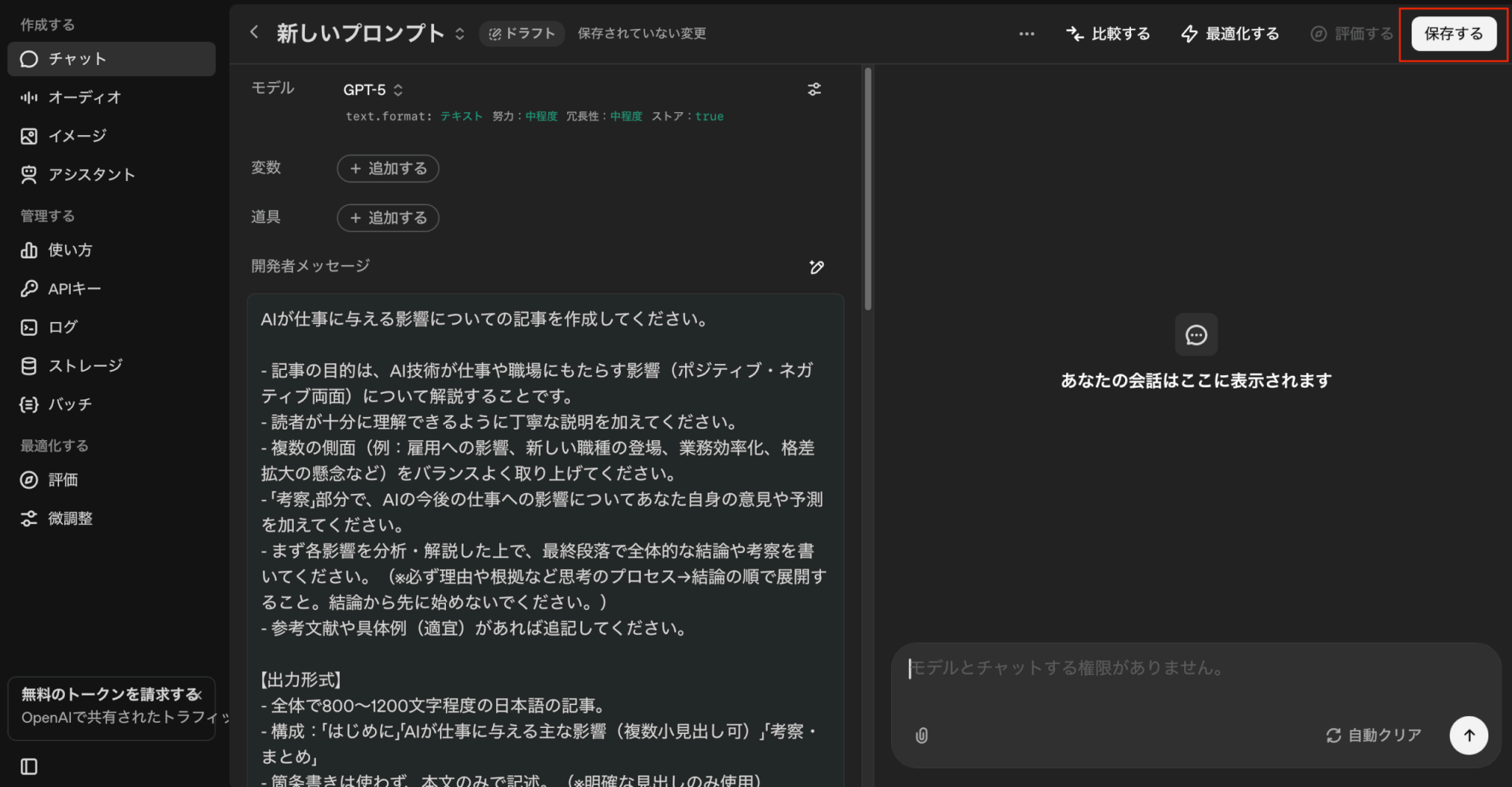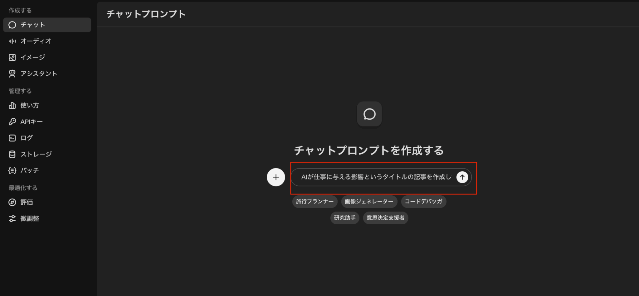 Playgroundという開発者向けのインターフェースで、作成したプロンプトをすぐにテストすることも可能です。