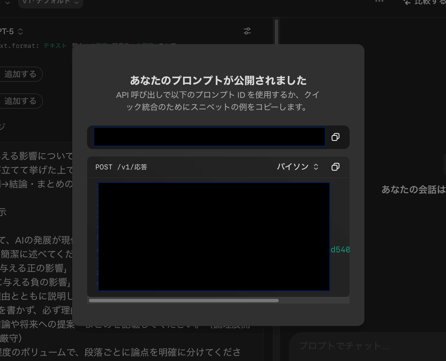 生成されたプロンプトIDを共有すれば、生成したプロンプトをシェアできます。