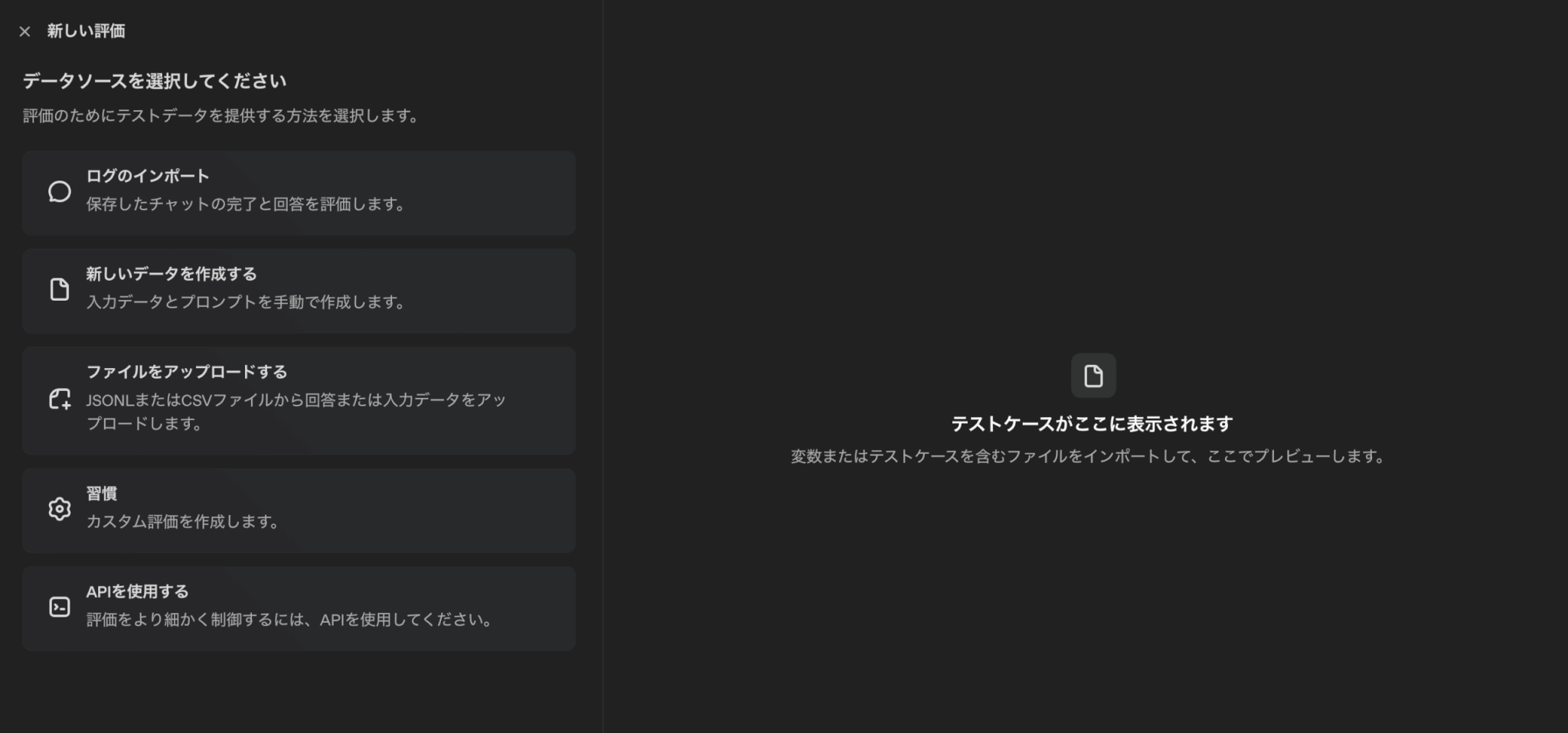 プロンプトが期待通りに動作するかを自動で確認する機能です。