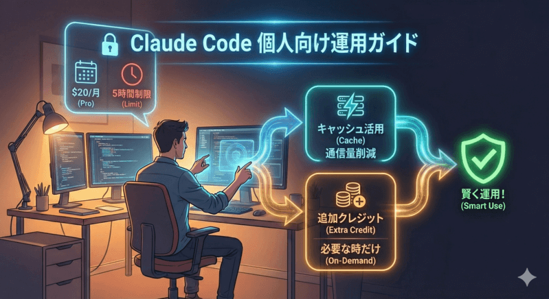 個人のユーザーにとって、月額$20(約3,000円)以上の投資は決して安くありません。ここでは、最新のキャッシュ機能を駆使して実質コストを下げる方法や、避けられない「5時間制限」をどう乗りこなすべきか、具体的な運用術を解説します。