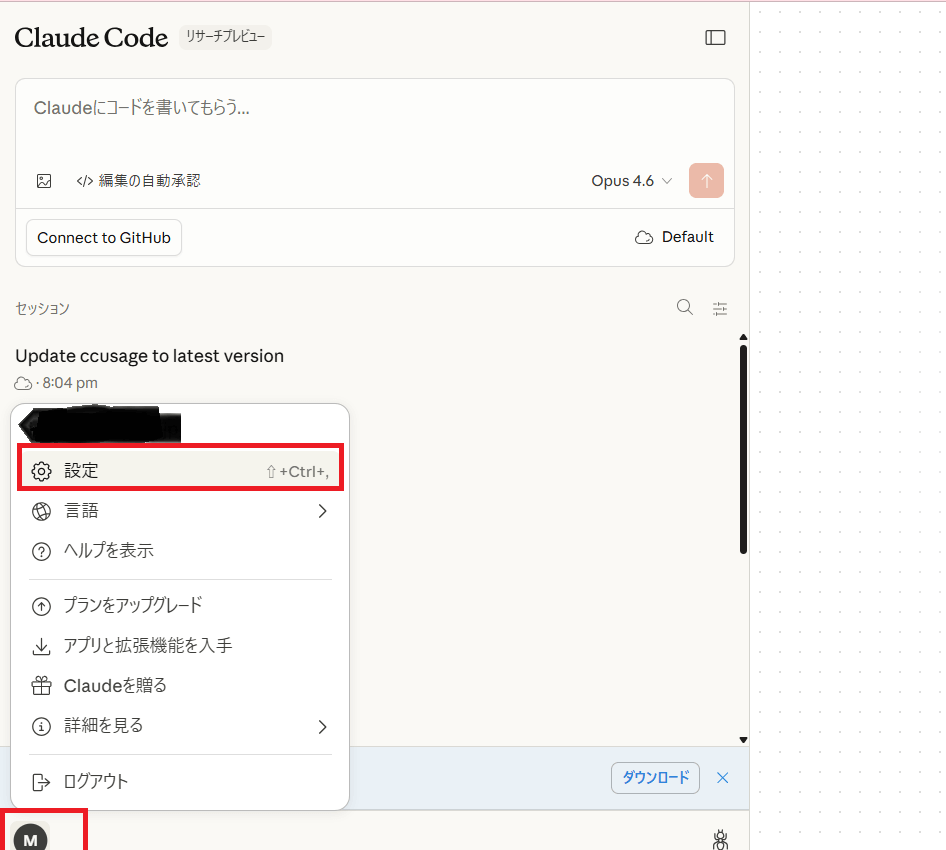 左下のアカウントアイコンを選択し、「設定」をタップします。