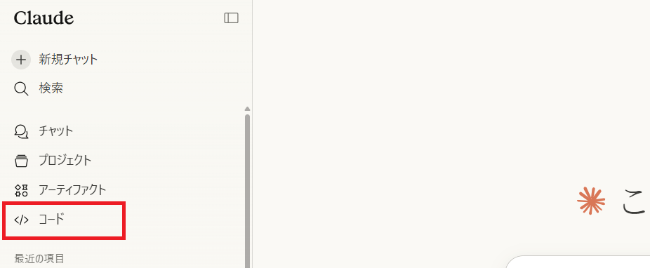 左側のメニューから「コード」をタップします。