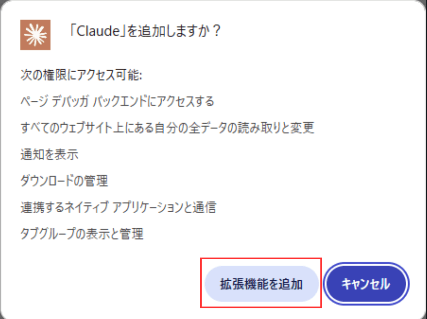 拡張機能の追加についてポップアップが表示されるので、「拡張機能を追加」をクリックします。