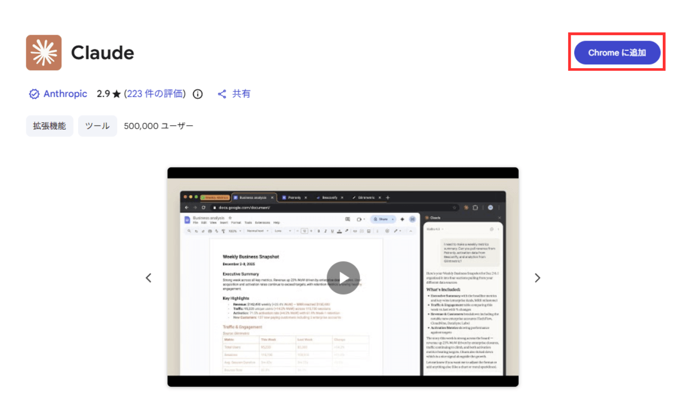 現在「Claude for Chrome」は「Claude in Chrome」に改名されています。