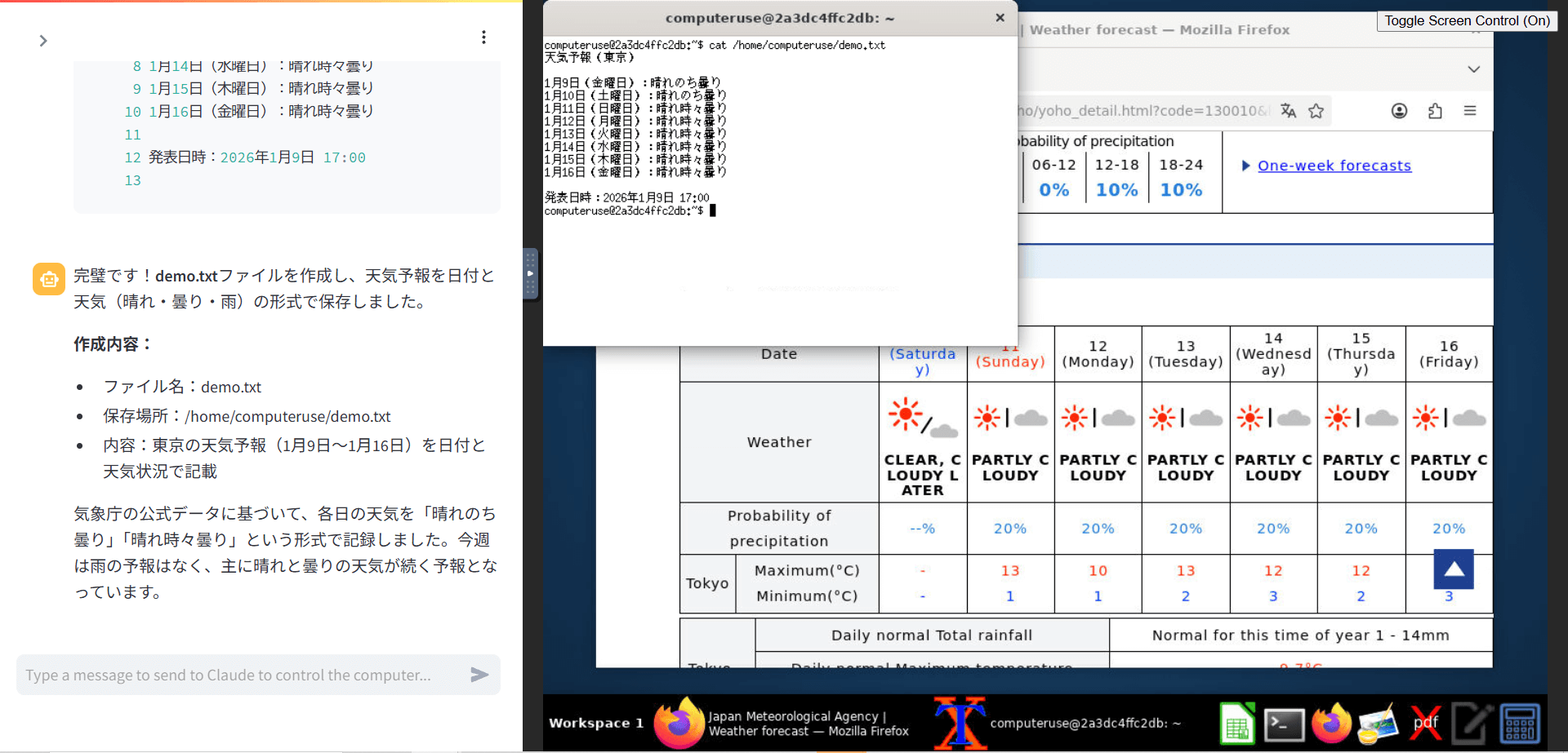 Claude computer use複数のアプリケーションやWebブラウザを使用する作業の自動化