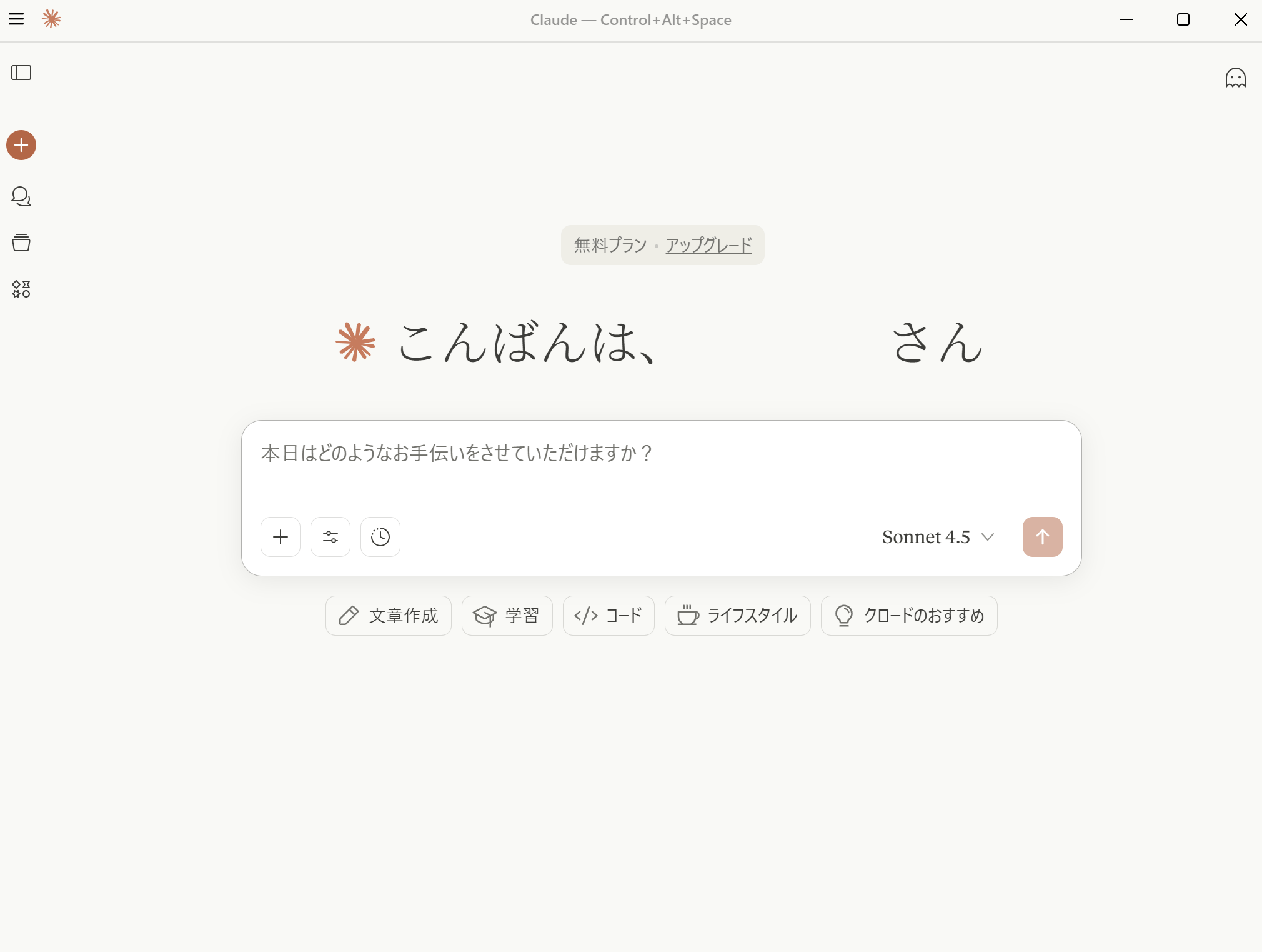 Claude Desktopの最大の特徴の一つが、ショートカットキーによる瞬時の呼び出し機能です。