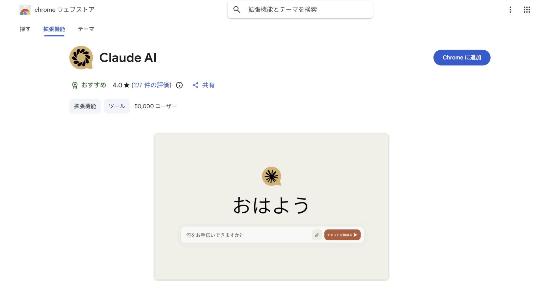 Claudeを使ったChrome拡張機能を調べると、Claude AIというものが見つかります。これは、この記事でご紹介しているClaude for Chromeとは別物になります。