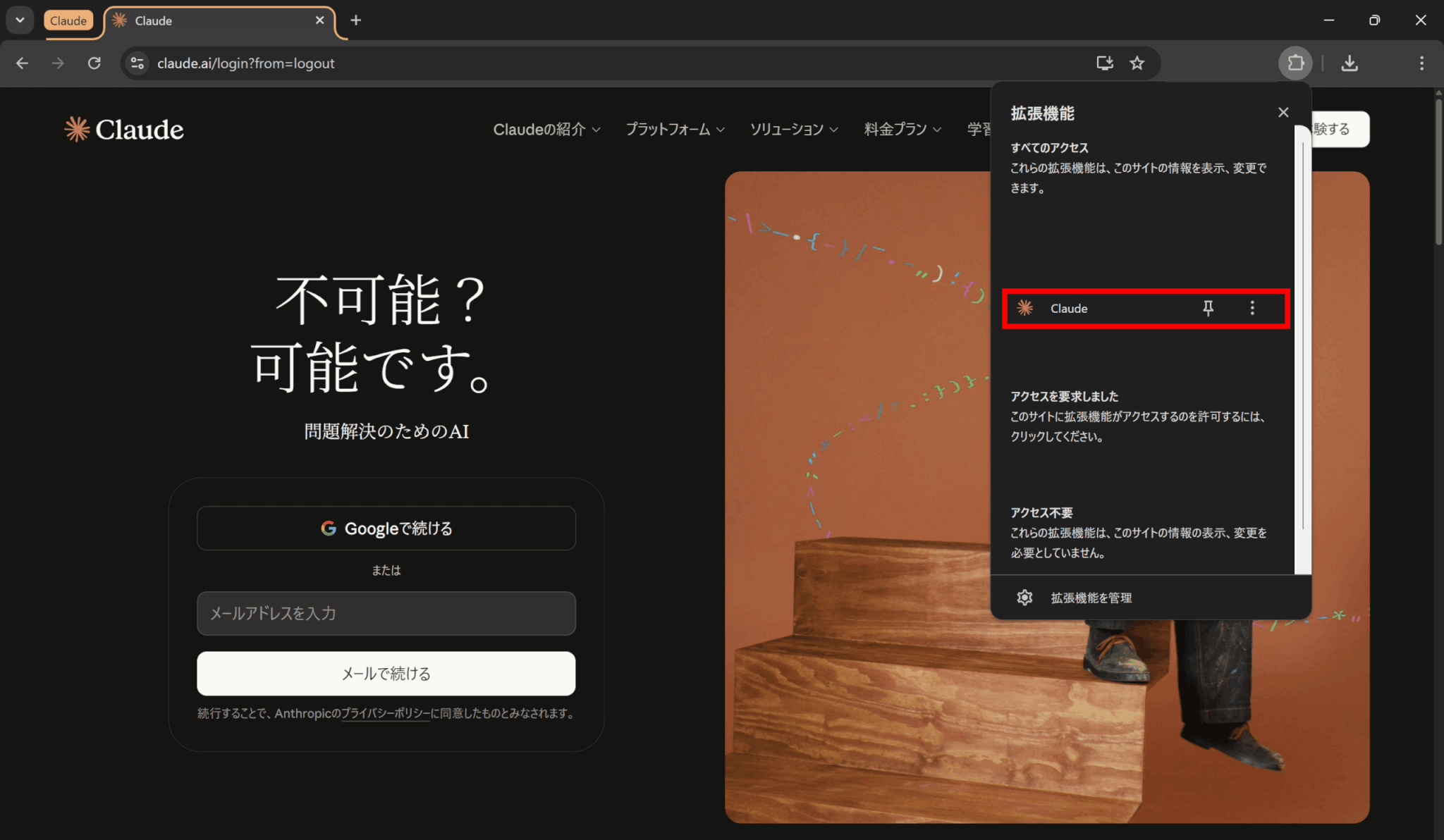 Chromeの拡張機能一覧を開き、Claudeを選択します。