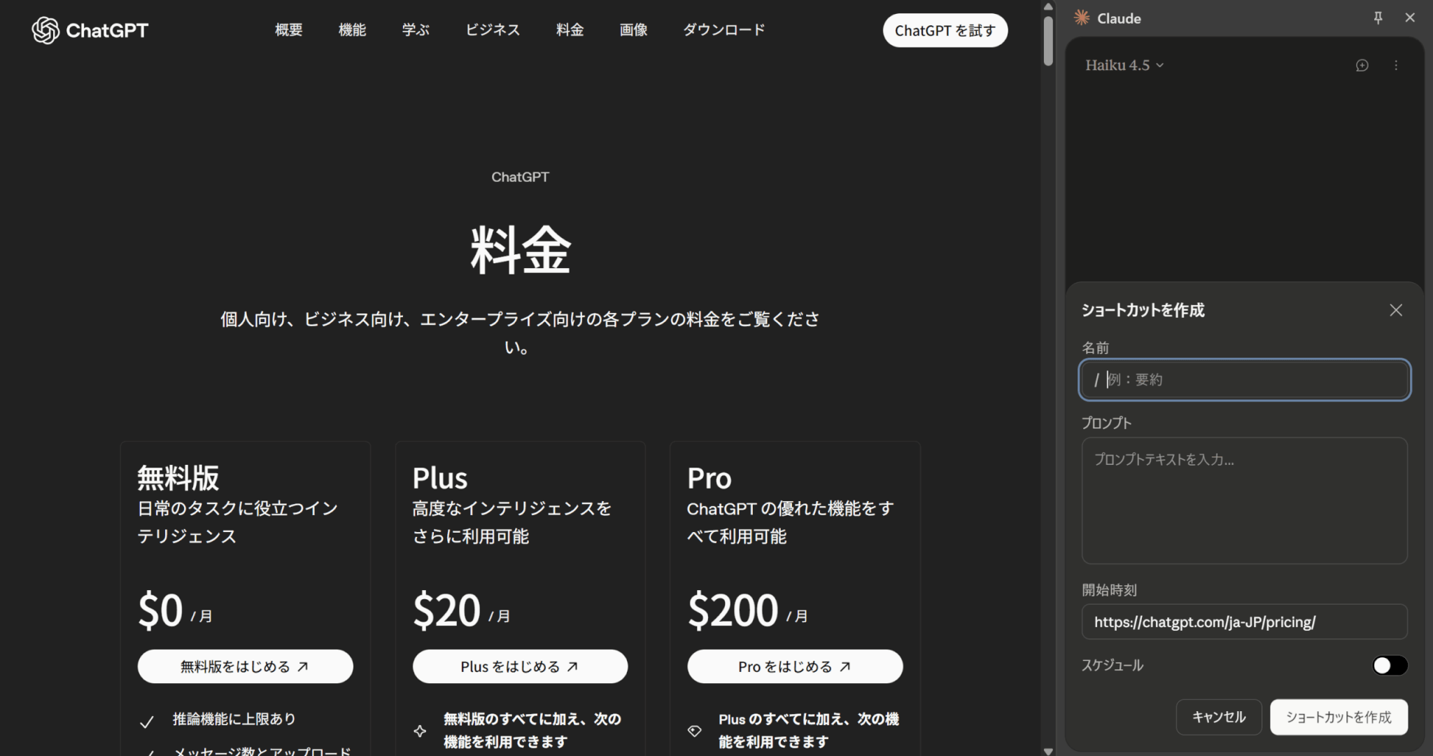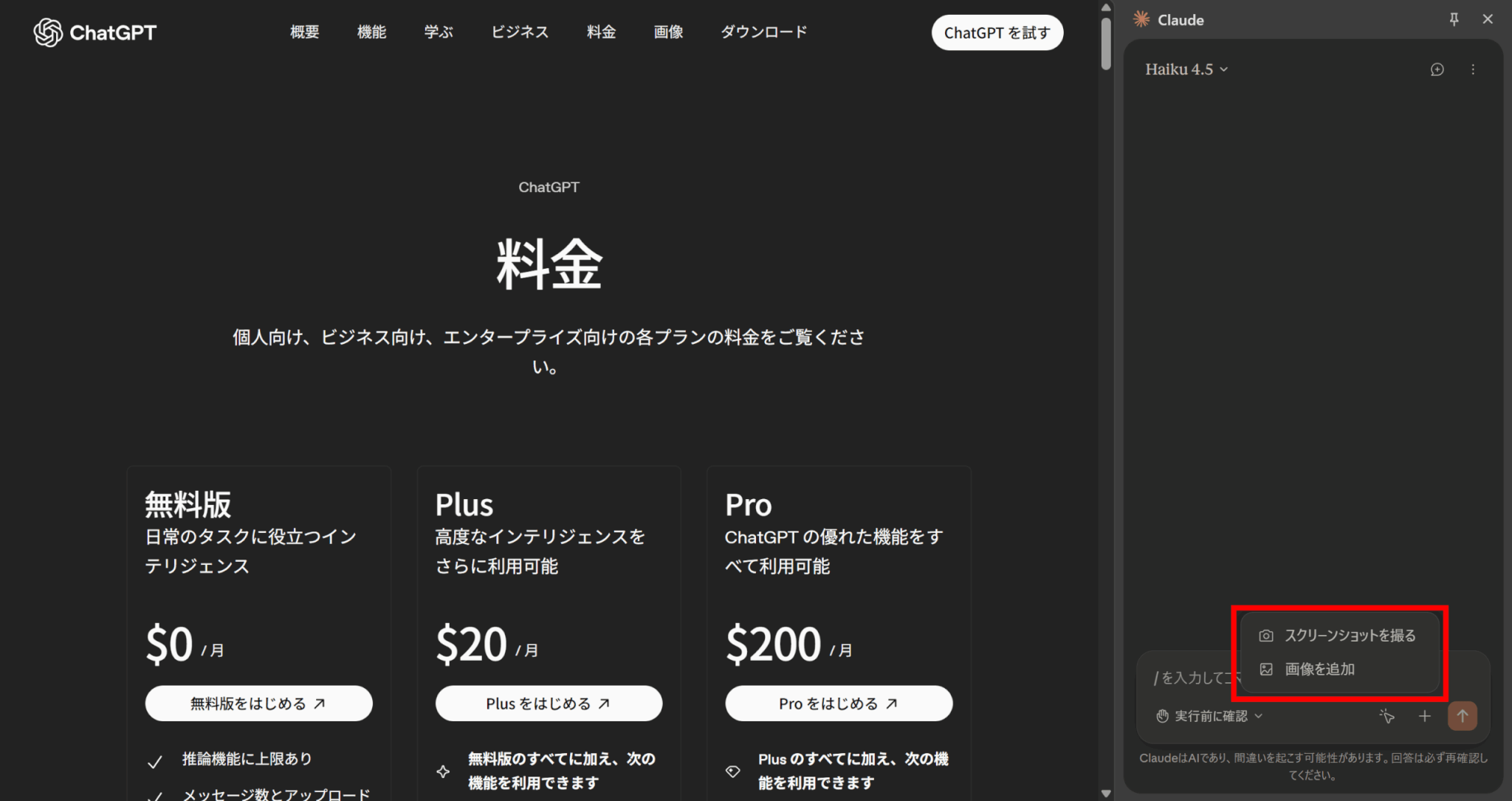 | Pro | 個人 | $20 $17(年払い) | Haiku 4.5 | |