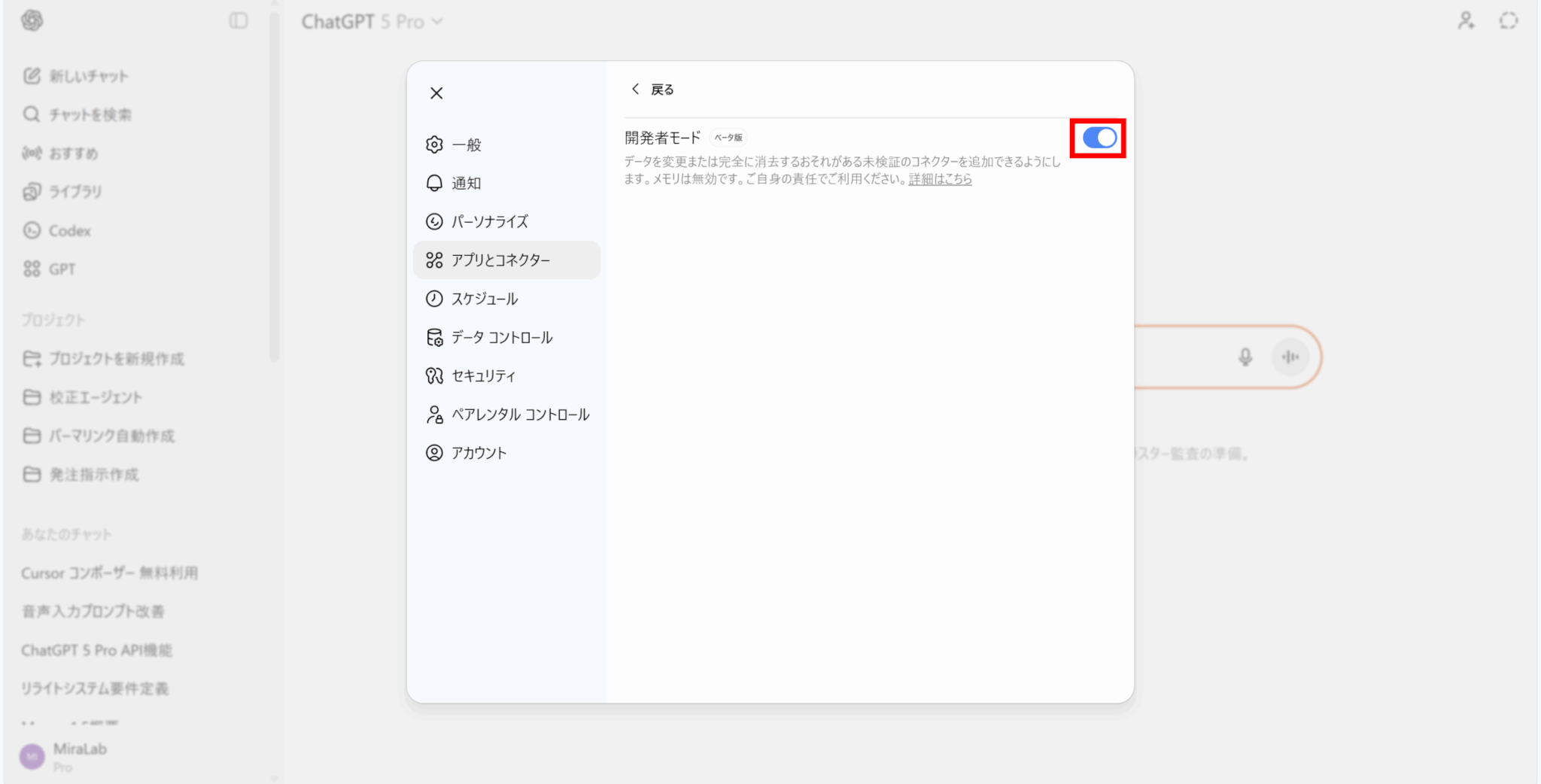 ChatGPTでのMCPコネクタ:有効化の流れ