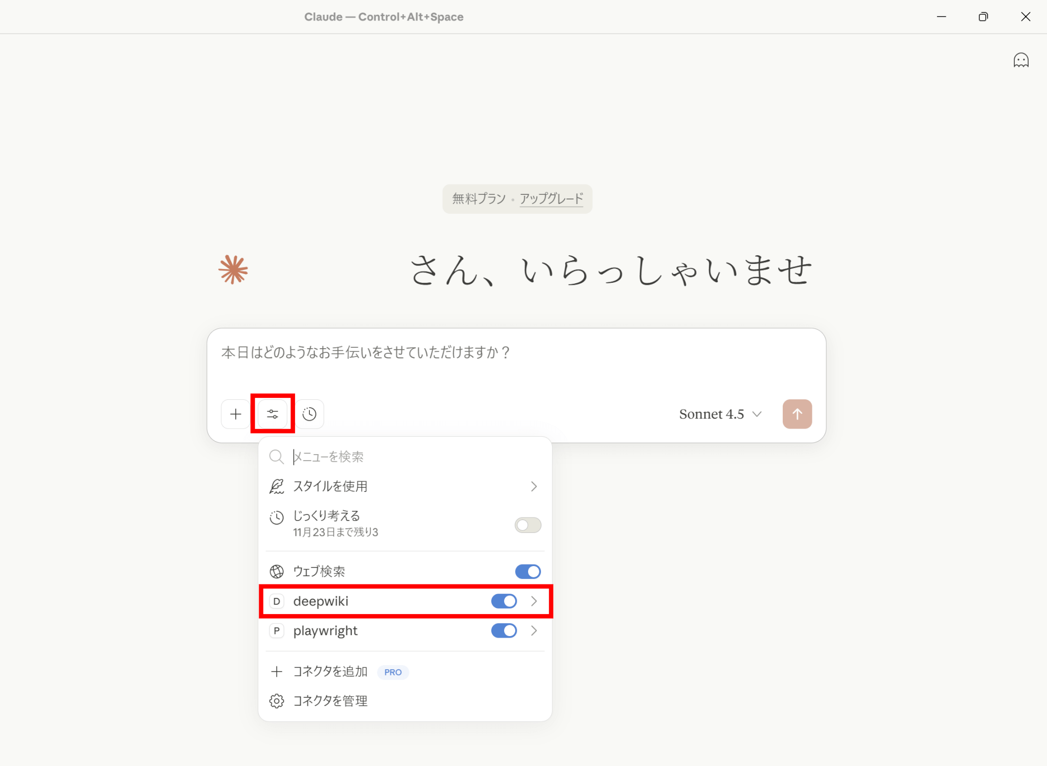 一方でClaudeは無料プランユーザーでもMCPを利用することが可能です。とりあえずMCPを使ってみたいという方におすすめです。