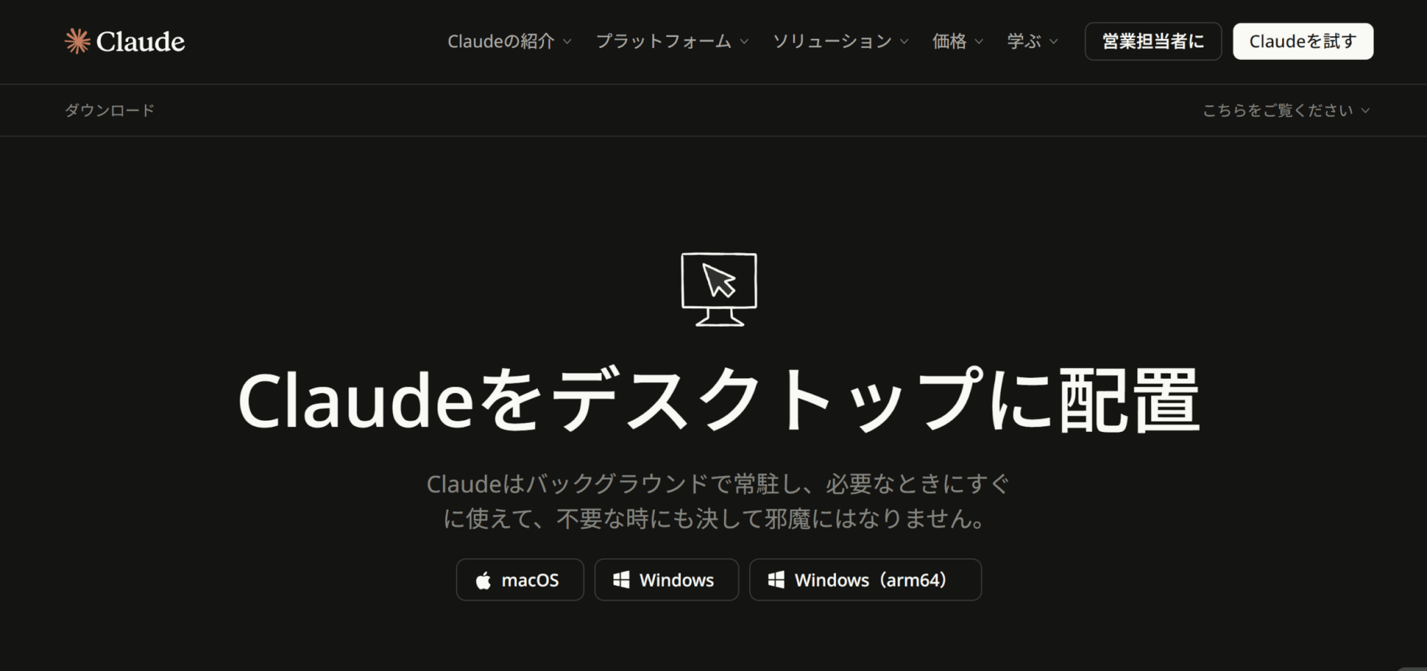 Claudeでは、Claude Desktopを使うことでMCPサーバーを導入できます。