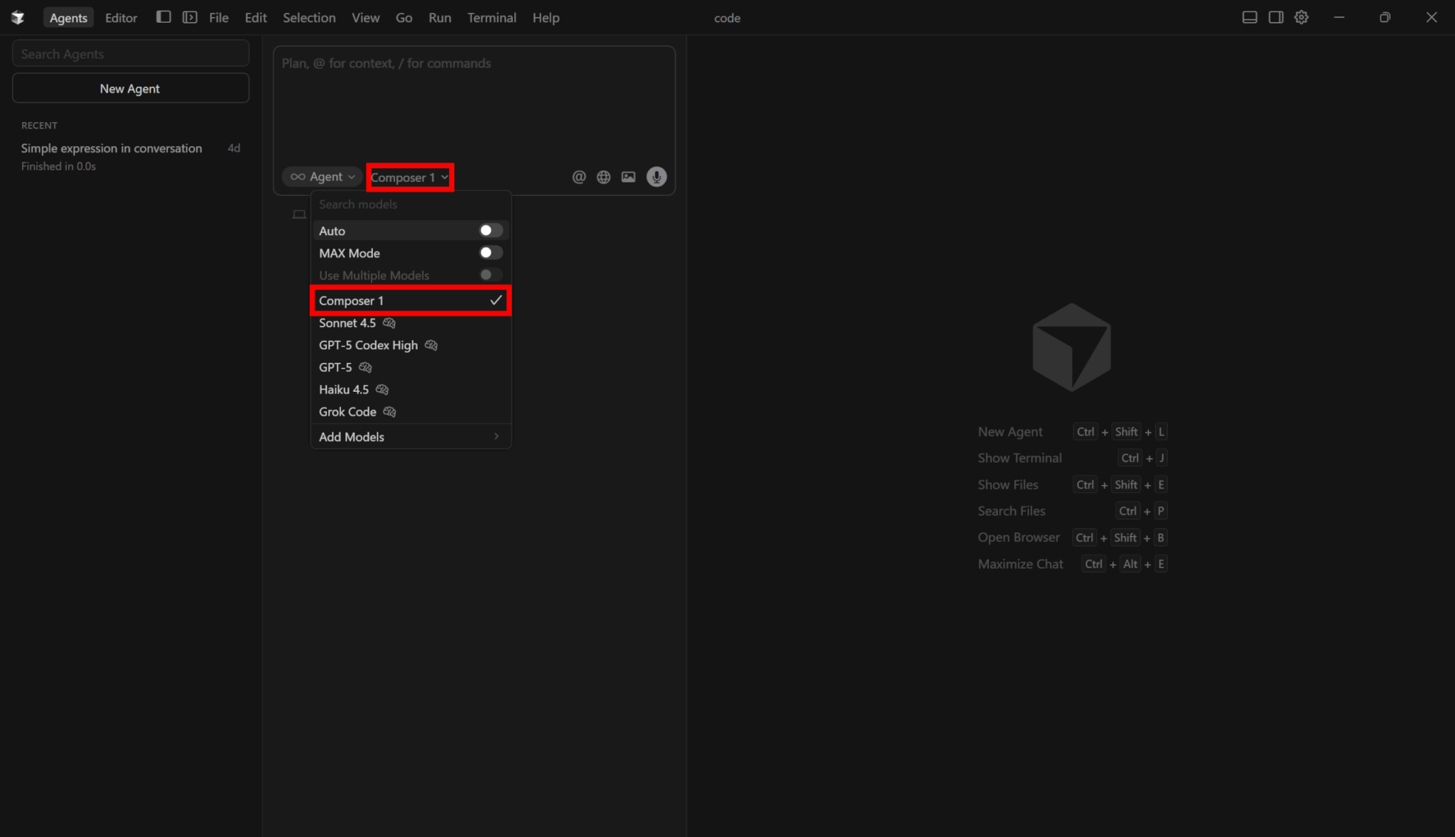 CursorのComposerは、Cursorに新しく追加されたコーディングモデルです。