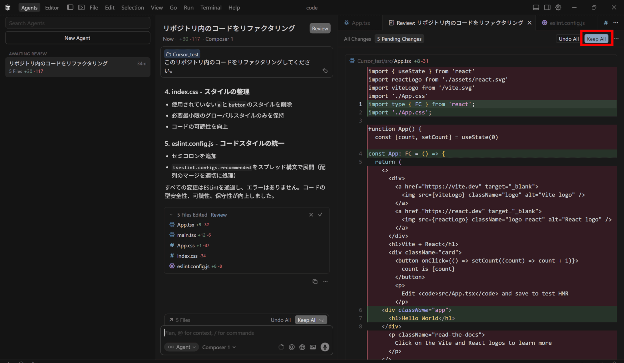 コードベースの品質維持と改善は、新Composerの高速な応答性が活きる領域です。