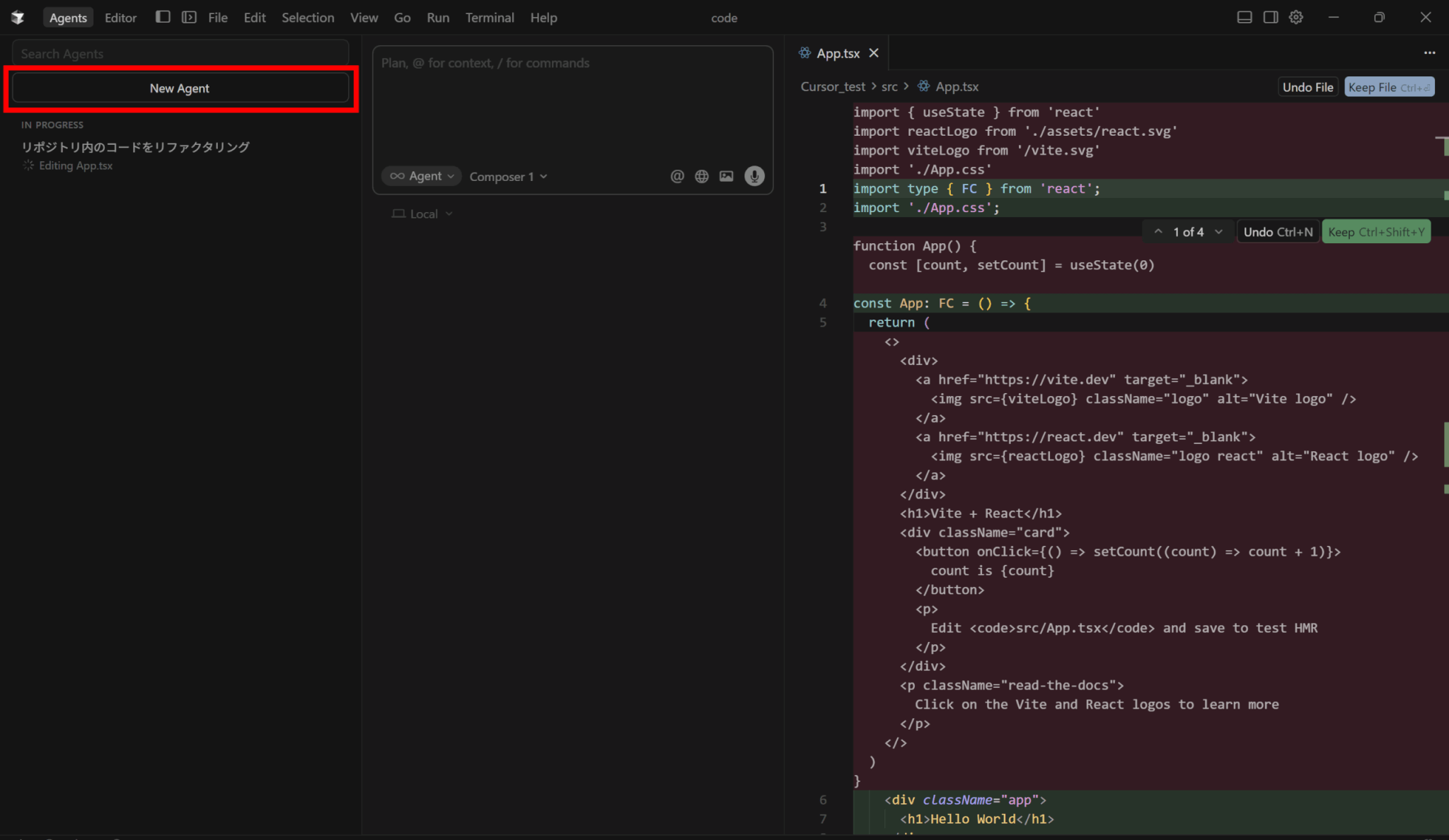 続いて、Cursorで新Composerを使う方法についてご説明します。