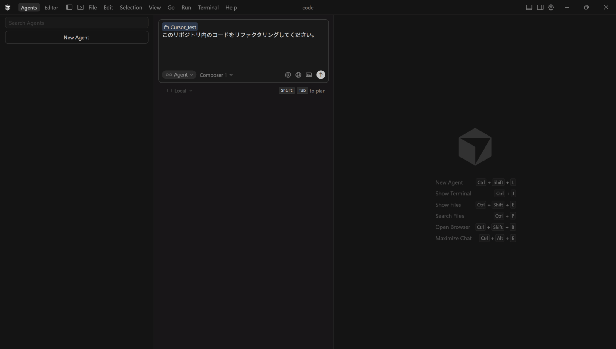 今回はエージェントモードで、リポジトリ内のコードをすべてリファクタリングしてもらうプロンプトを入力しました。