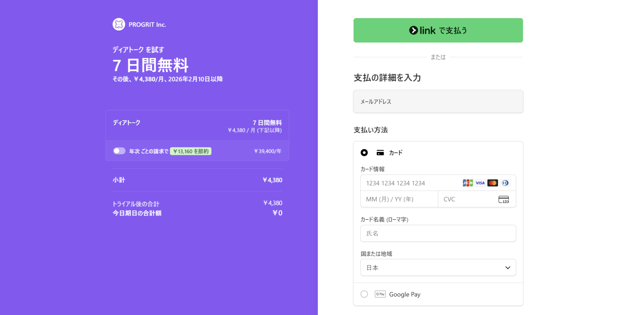 無料トライアルを開始するには、両アプリともにクレジットカードなどの決済情報の登録が必須となります。